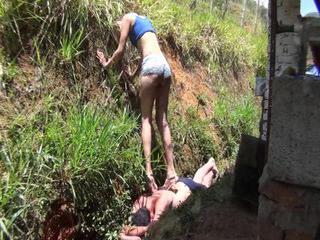 Femdom Lady – dominantes Weib trampelt auf ihrem Liebhaber rum